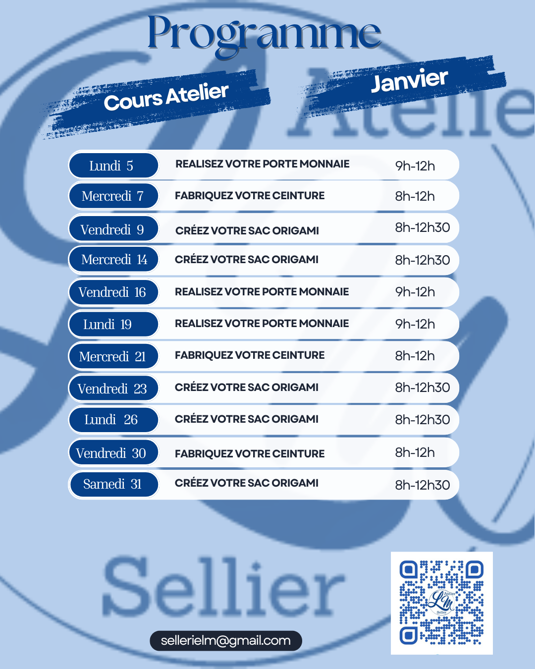 Découvrez chaque mois la liste de mes ateliers. Contactez-moi pour vous inscrire.